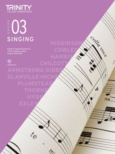 Selected pieces for Trinity College London singing exams for 2018-2021. Contains a selection of songs from across a range of styles and periods, teaching notes and a CD of recordings of the piano accompaniments and audio pronunciation guides for all song texts. This book contains material intended for Singing at grade 3.